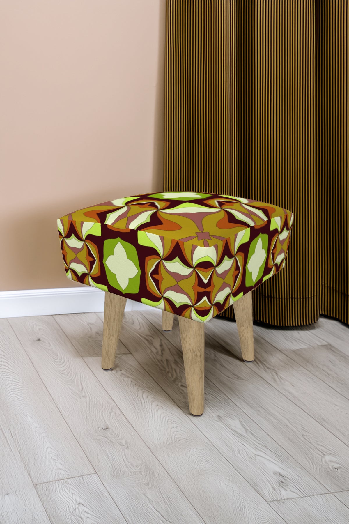 Dressed in Nuvula’s signature abstract and floral prints, these stools are a study in geometric elegance, available in captivating square, round, or hexagon shapes. The refined silhouette is completed by cone-shaped legs, lending a sophisticated, contemporary finish to its chic design.