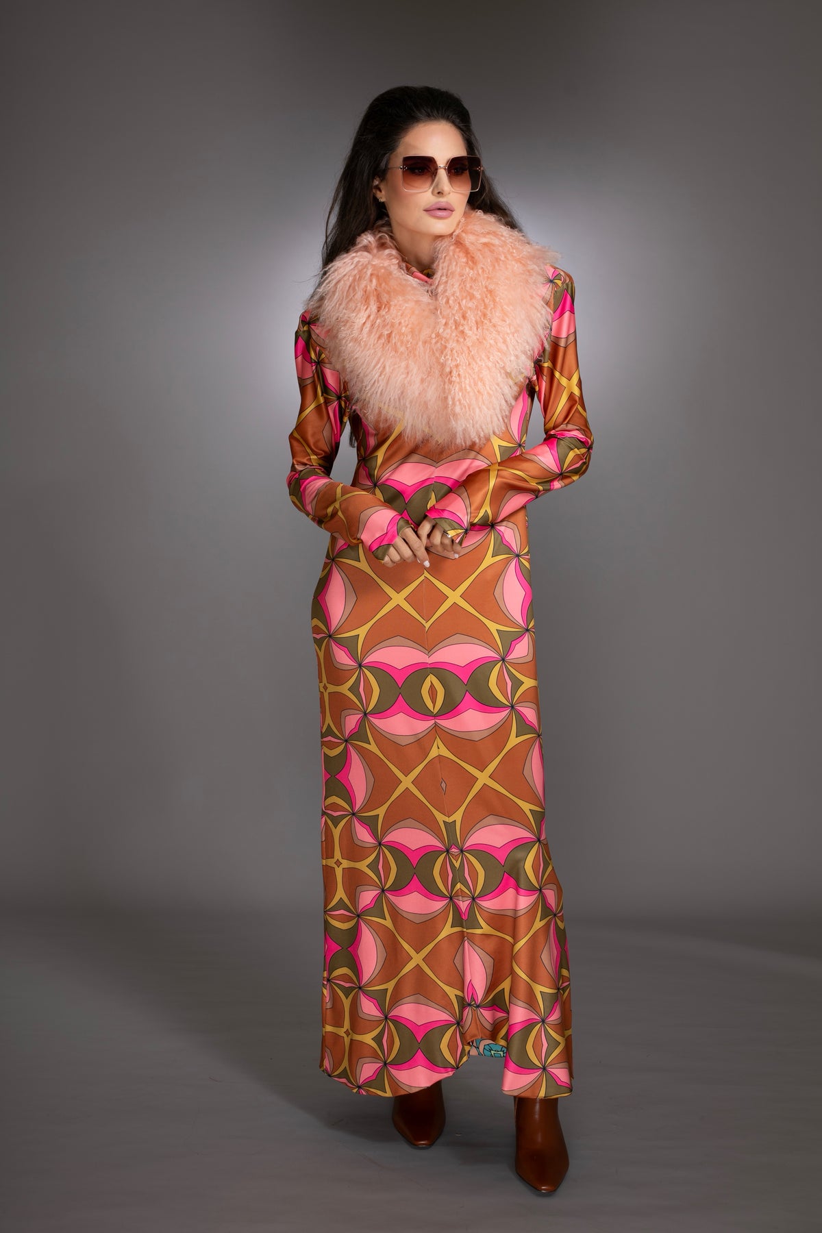 Turn heads with Nuvula’s Psychedelic Maxi Dress, a mesmerizing piece where bold artistry meets refined design. Crafted from silky viscose lycra, this maxi-length silhouette flows effortlessly with every step, showcasing a vivid abstract psychedelic print.