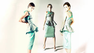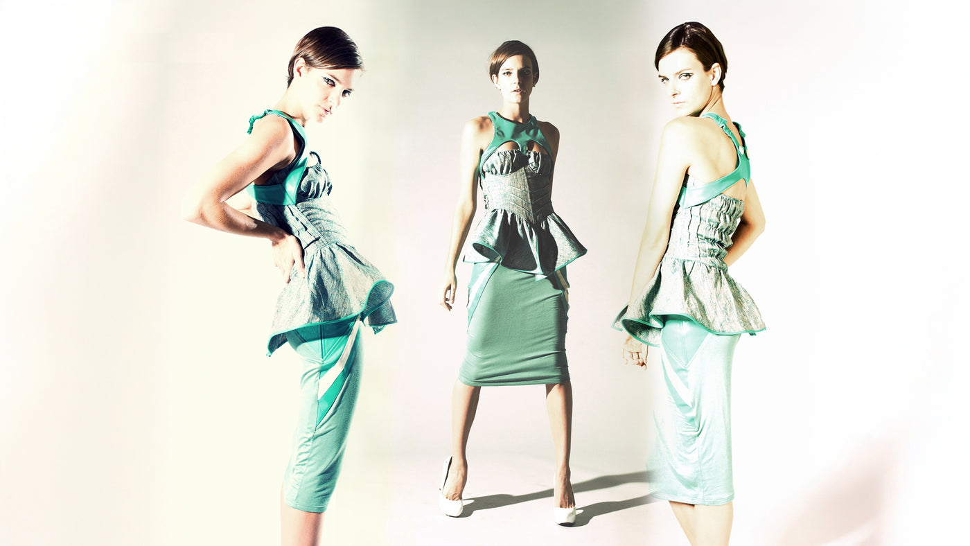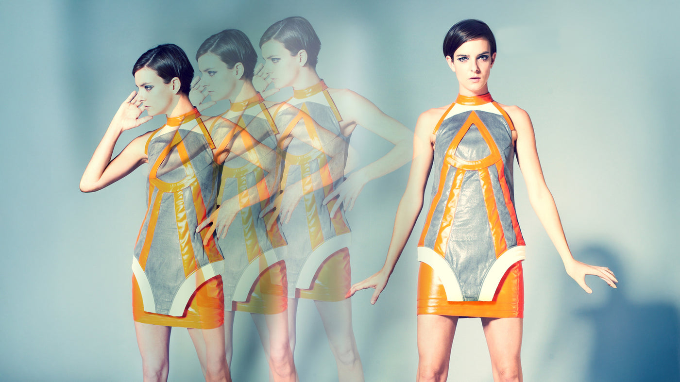 Costume Designer Vanessa Victoria unveils a vision of refined futurism, channeling the clean, graphic lines of the 1960s Space Age. The collection sculpts the body using deliberate contrast, featuring bold structural peplum detailing and sharp high-collar shifts. This repertoire emphasizes form, utilizing elegant monochrome palettes—like the crisp white suits—alongside graphic bursts of vibrant, structured prints.